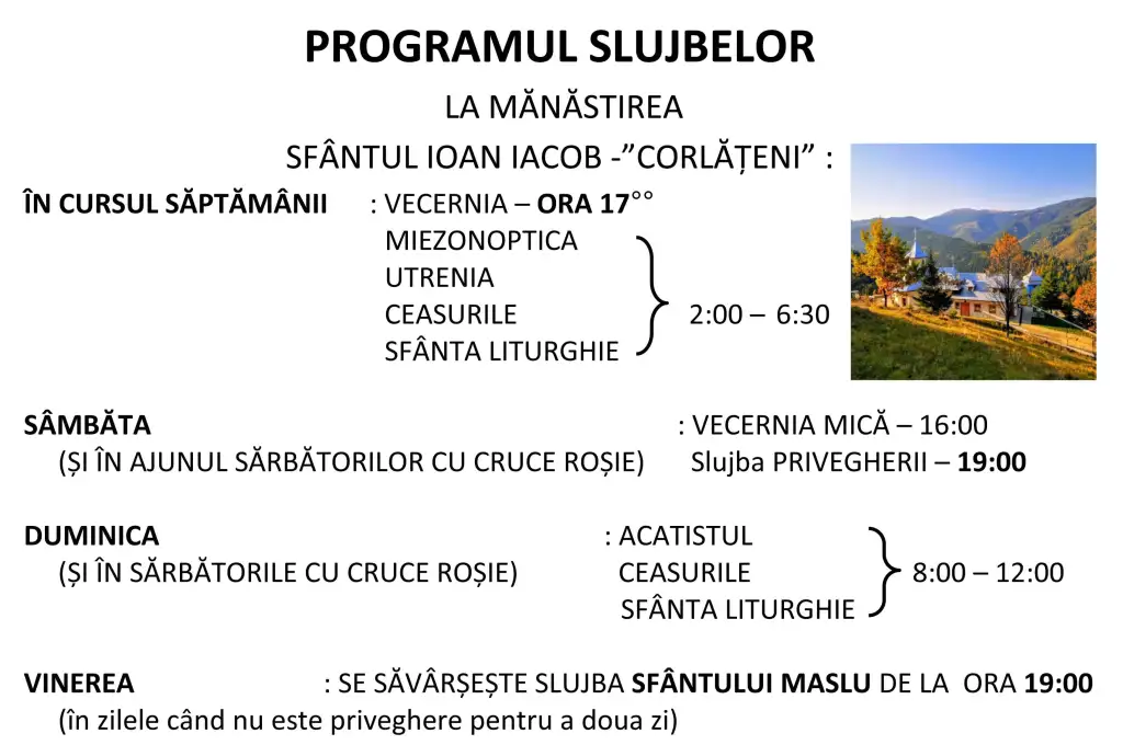 ACATISTE: În mânăstirea noastră se săvârșește slujbă în fiecare zi. Cei care doresc să lase acatiste pentru vii și/sau adormiți pentru a fi pomeniți la slujbe vă rugăm să le trimiteți pe adresa de mail: